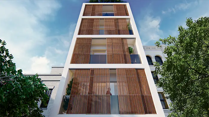 Los revestimientos de pared hechos con madera aportan confort y calidez al edificio, ofreciendo una piel natural, sostenible y 100% reciclable.