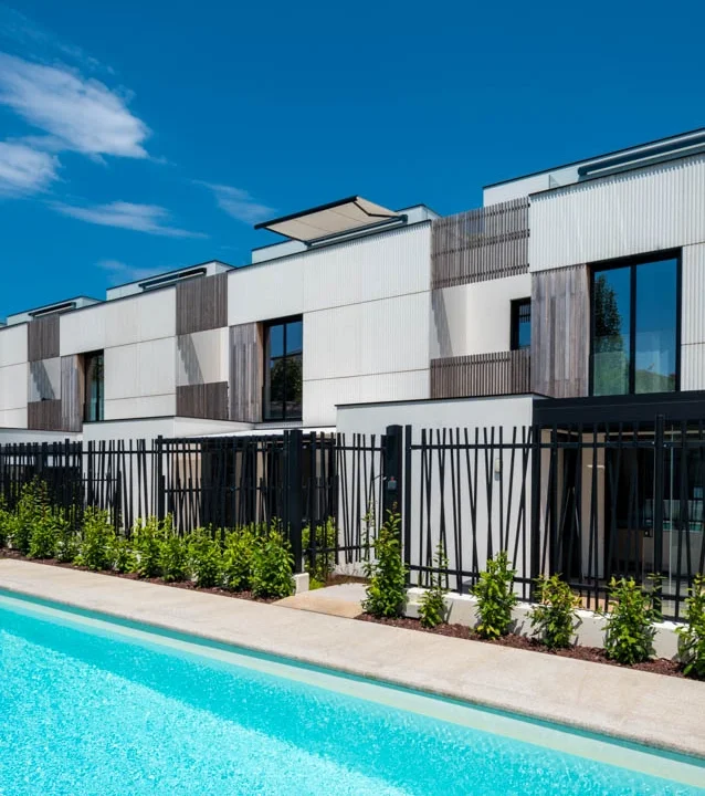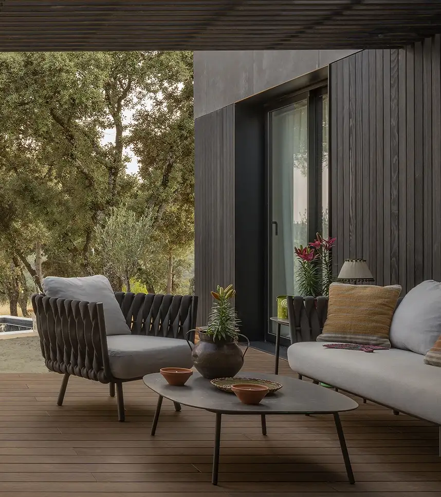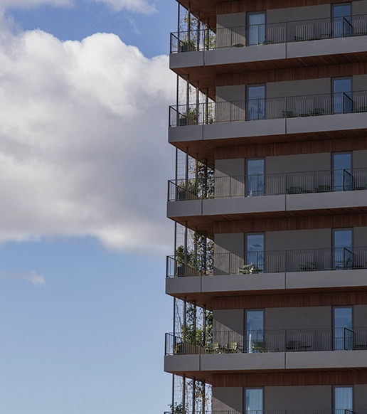 Foxos es una bonita playa ubicada en Sanxenxo (Pontevedra), junto a la conocida Ermita de A Lanzada, que también da nombre al otro popular arenal gallego. Y esa ubicación, Foxos, da nombre al proyecto impulsado por Arial de un conjunto de 73 viviendas de lujo, totalmente integradas en la naturaleza y con unas vistas privilegiadas. La propuesta arquitectónica de Carbajo Barrios conjuga la vegetación con el hormigón y la madera. Concretamente, optaron por Thermopine como piel de la construcción y celosía de protección solar mediante un sistema de contras practicables.